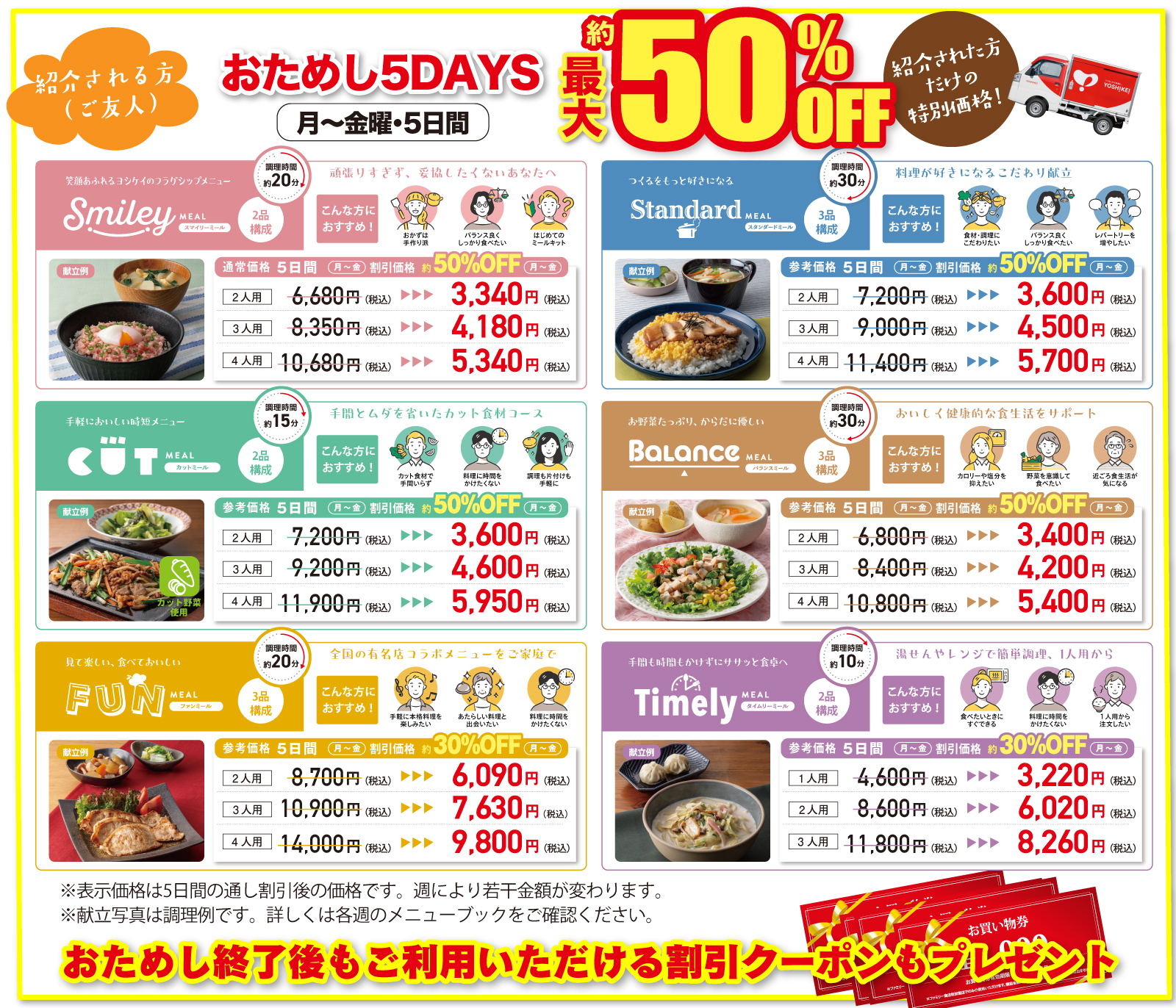 大切なお客様のご友人やお知り合いで、夕食づくりや献立にお困りの方がいらっしゃれば、ぜひご紹介ください。